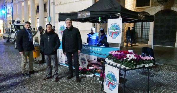 In dieci volontari dell’associazione presieduta da Giacomo Sguotti hanno venduto ciclamini, soprattutto alla mattina, alle signore, mentre dal pomeriggio castagnata e in tardo pomeriggio anche panini e porchetta.  Il gazebo con panini e porchetta o salame, castagne e ciclamini sono stati messi in vendita a offerta libera oggi e domani. E anche domani sarà ripetuto il gazebo dalla mattina alla sera. “Ovviamente in caso di maltempo - ha spiegato Giacomo Sguotti, soddisfatto dell’affluenza - saremo in piazza anche il prossimo week end”.