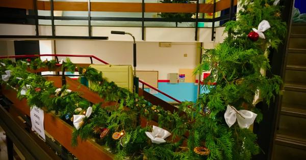 Chi entra pensa quasi di aver sbagliato posto, non può essere una scuola! Ghirlande di edera a mezz'aria, corrimano con rami di pino, luci e decorazioni e poi gli alberi di natale, uno per piano. E il presepe, realizzato sullo “sfondo” di Piazza Vittorio Emanuele II, grazie al contributo dell’architetto Pierluigi Sichirollo. Salendo la scala si può ammirare una decorazione sospesa intrecciata dalle mani di chi questa scuola la ama e la vuole accogliente e bella.