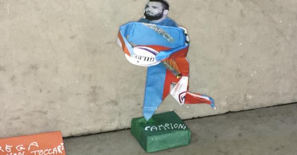 Molti curiosi si sono fermati a osservare la piccola opera sull'opera. Ma c'è un errore: infatti l'origami in rossoblu, con la palla ovale, raffigura Nicola Quaglio, che è sì rugbista 29enne di Rovigo, campione indiscusso. Ma gioca attualmente alla Benetton Treviso, dunque non era al Battaglini, ieri, a lottare in mezzo al fango per la vittoria.