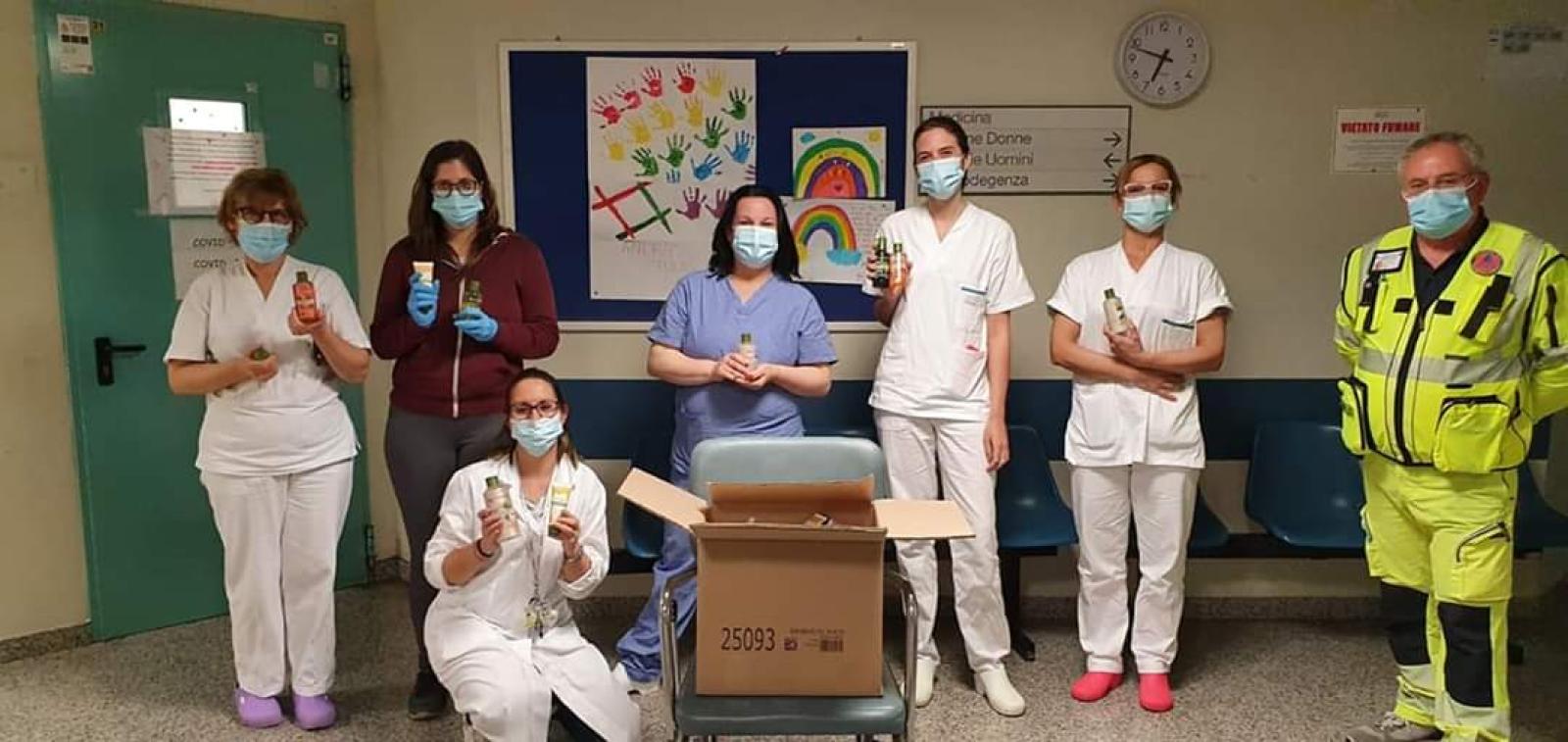 Simona Lazzarini, Anna Dalla Villa, Denise Segantin e clienti, Aido Castelguglielmo e la presidente Cinzia Tinazzo, Francesca Zeggio e Flavio Rizzi della Protezione Civile hanno voluto regalare creme e prodotti di bellezza a medici, alle infermieri e ai tecnici dell’ospedale covid.