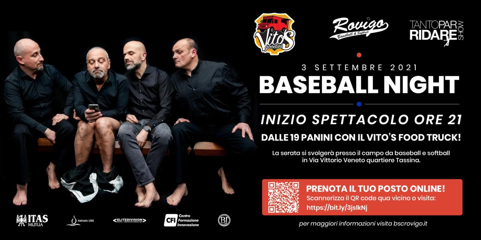 Lucio Taschin direttore sportivo del Baseball softball Rovigo, ha sottolineato l'importante attività svolta. “Abbiamo affrontato una stagione impegnativa con tante soddisfazioni. Siamo in serie A e siamo felici dei risultati ottenuti dalle nostre tredici squadre, 4 andranno ai play off , inoltre si concluderà a breve l'animazione estiva che ha visto la partecipazione di 130 ragazzi. Grande soddisfazione inoltre, anche dalla squadra di baseball per ciechi. Per quanto riguarda Baseball night, la vera novità è la tradizione, che quest'anno spostiamo nella nostra casa, il campo di via Vittorio Veneto. Vogliamo come sempre sia una festa e raccomandiamo a tutti di venire in tranquillità lasciando le macchine nei parcheggi della zona per evitare assembramenti”.