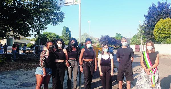 La piazzetta ex Cepol, l’estate scorsa è stata intitolata a Jerry Essan Masslo, nella foto allegata un momento della cerimonia.