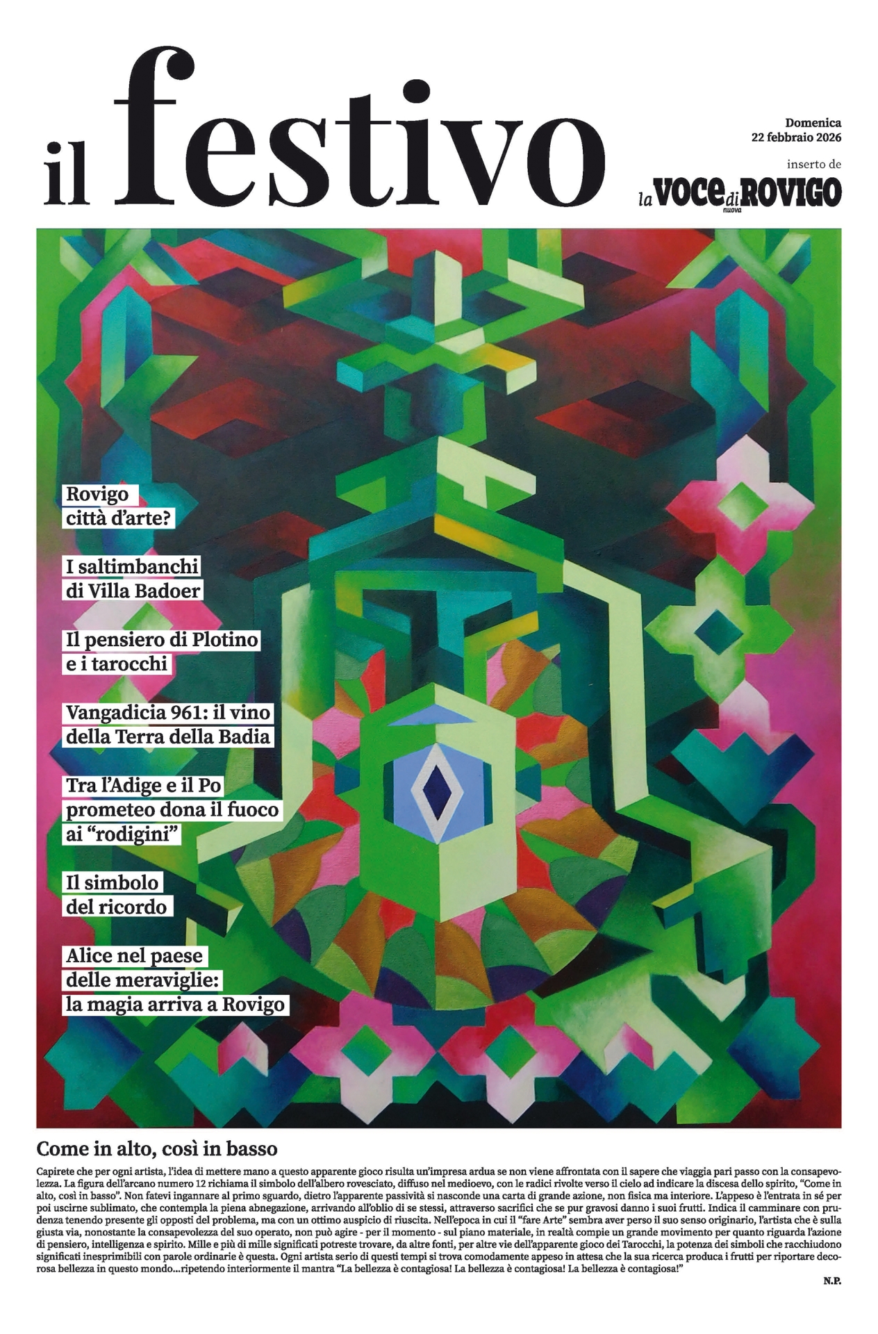 Editrice: Editoriale La Voce Società Cooperativa. “La società percepisce i contributi di cui al decreto legislativo 15 maggio 2017, n. 70. Indicazione resa ai sensi della lettera f) del comma 2 dell’articolo 5 del medesimo decreto legislativo.” Redazione: piazza Garibaldi 17, 45100, Rovigo tel. 0425 200282 e:mail: redazione.ro@lavoce-nuova.it sito: www.lavocedirovigo.it