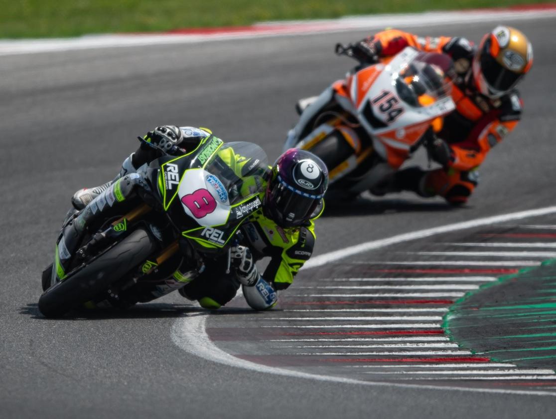 Il secondo turno di qualifiche, sostituito dal warm up della domenica, lo ha visto fare il quarto miglior tempo tra i presenti in pista. Le carte in regola dunque ci sono tutte e con il Team dei Rapaci inizierà subito a lavorare per affinare l’assetto e trovare il feeling giusto sulla Yamaha R6. Alla domenica, al semaforo verde, Michael stupisce tutti e dopo qualche curva conquista, per più di metà gara, la quarta posizione.