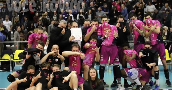 Partita di grande forza mentale quella dei nerofucsia, che dopo aver dominato il primo parziale hanno saputo assorbire il ritorno degli ospiti, guidati dall’incontenibile Cantagalli. Sul versante polesano strepitoso Dordei, capace con la sua battuta di mettere costantemente in crisi la ricezione lombarda. Tre punti fondamentali per la testa, ma anche per la classifica: Porto Viro torna infatti leader solitaria del girone bianco di Serie A3 Credem Banca con due lunghezze di vantaggio sulla più diretta inseguitrice.