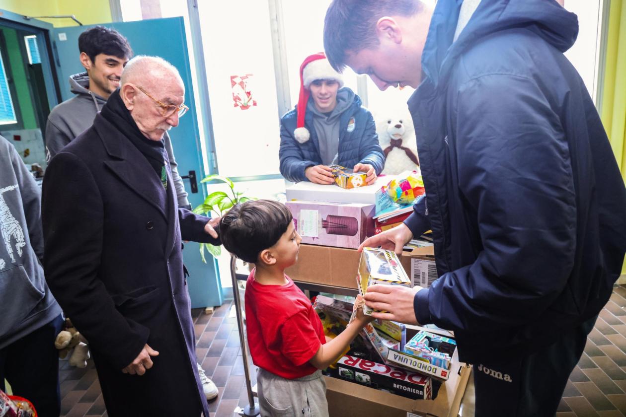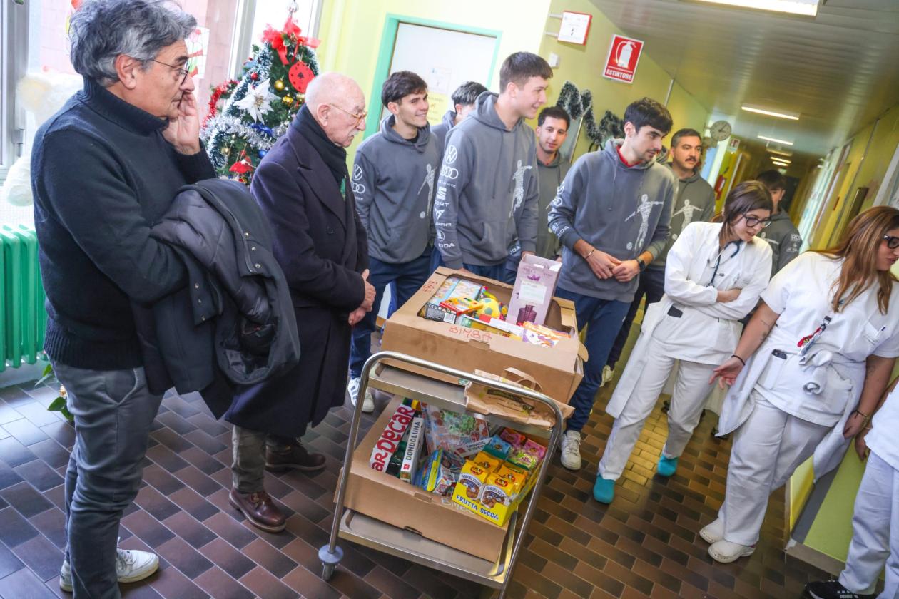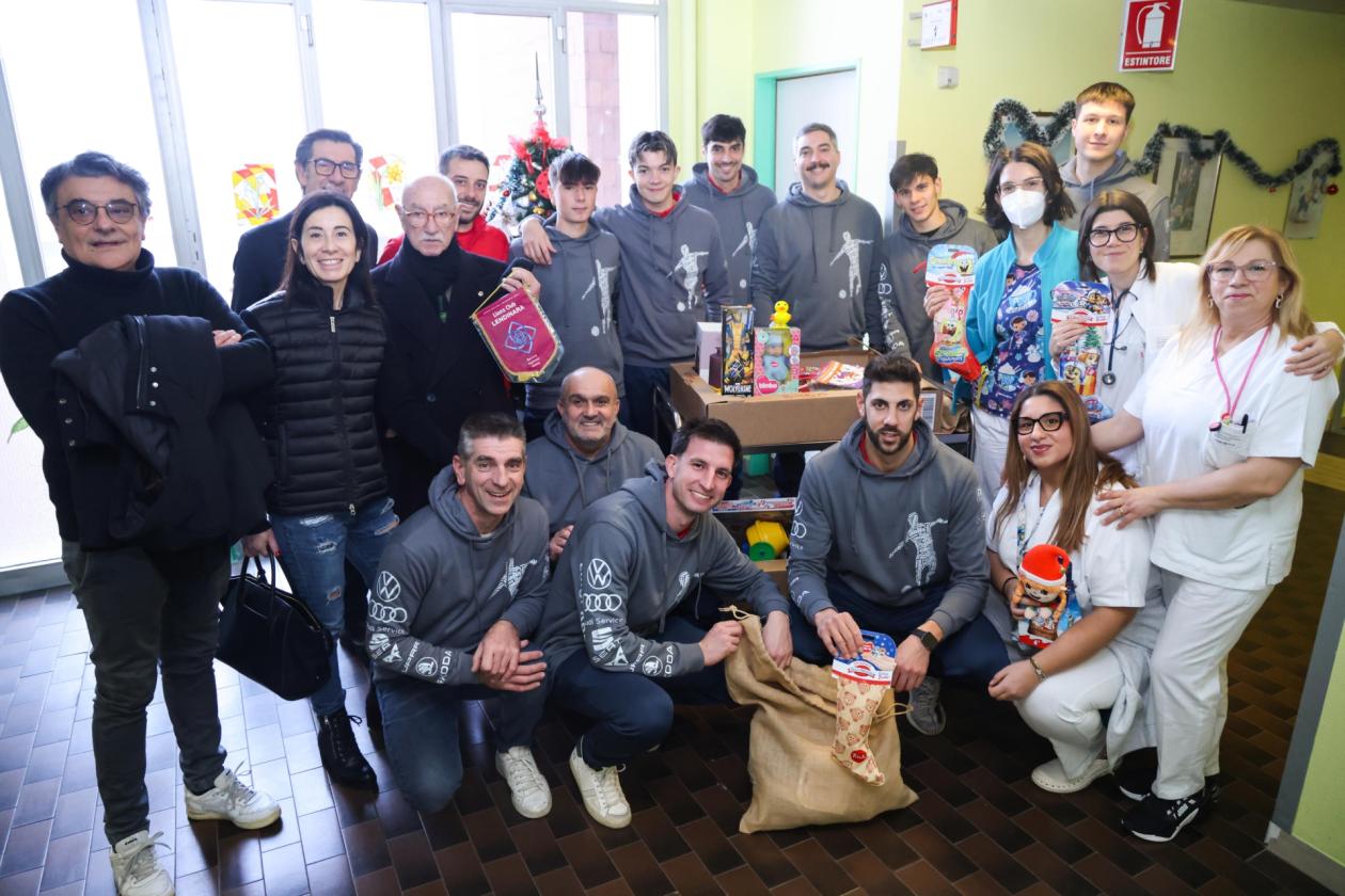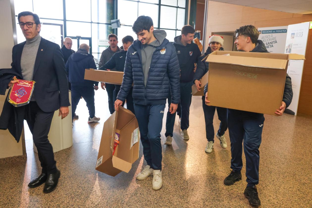Dirigenti e atleti della società biancorossa, assieme ai rappresentanti Lions Gino Zatta, vicepresidente, e al socio Gianni Paiola, hanno portato con sé un sacco e alcuni scatoloni pieni di regali e calze per i giovanissimi pazienti, consegnando loro i doni. Una iniziativa resa possibile anche dal contributo di tanti sponsor che hanno voluto partecipare, pur senza essere presenti fisicamente alla consegna, a un momento davvero bello e appassionante.