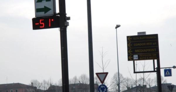 E' davvero curiosa la foto scattata a San Giovanni Lupatoto e riportata dall'Arena. Appena fuori dalla Transpolesana, infatti, un display impazzito indica che - in questi giorni di primavera - ci sarebbero 51 gradi sotto zero. Insomma, dalla Transpolesana... alla Transiberiana!