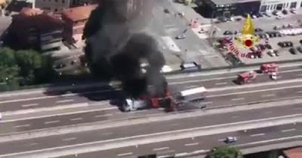 E un video dei vigili del fuoco che racconta più di mille parole quello che è successo a 100 metri appena dal luogo dove proprio un anno fa esplose un camion facendo saltare in aria anche un pezzo di autostrada (guarda il video).