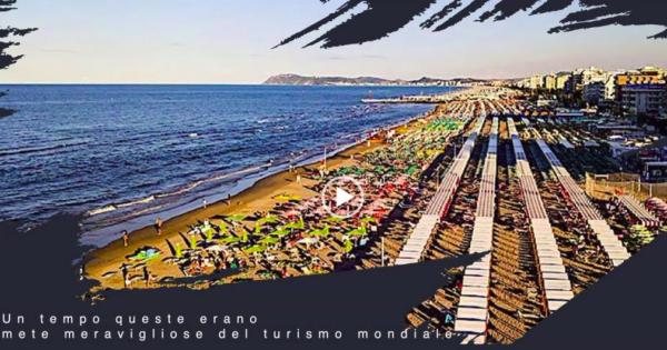 “Un tempo queste erano mete meravigliose del turismo mondiale – si legge nelle didascalie mentre scorre una vecchia foto che sembra di Riccione – ma oggi con il dilagare dell’epidemia nel nord Italia non sarà più possibile praticare una cultura di massa del turismo con un sistematico sfruttamento del suolo e un impatto ambientale devastante”.