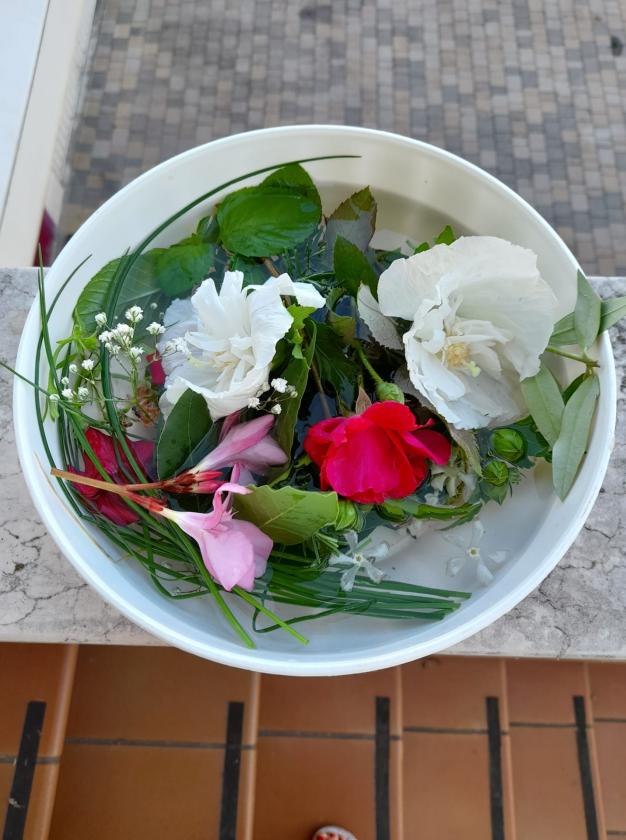 E questa mattina (giorno di San Giovanni) si sono raccolti i frutti di quella "acqua speciale" lasciata all'aperto durante la notte per raccogliere la rugiada.