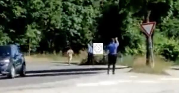 L'uomo completamente nudo è stato "avvistato" mentre correva per la strada in pieno giorno, in mezzo ad auto e camion, inseguito per un breve tratto da due carabinieri.
