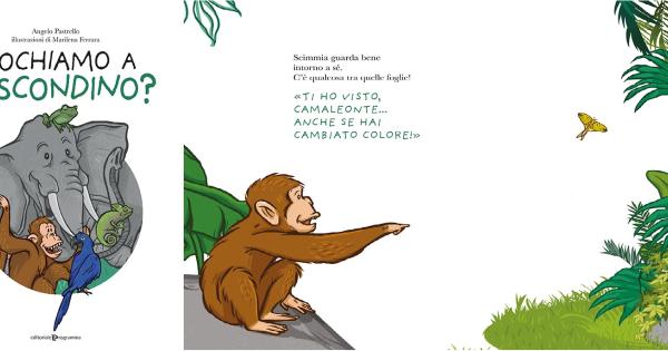 Sono proprio questi elementi a costituire la base della nuova pubblicazione (pensata per la fascia d'età da 1 a 4 anni) di Editoriale Programma, intitolata “Giochiamo a nascondino?”, dove gli animali della giungla si cimentano in uno dei giochi più conosciuti al mondo. Angelo Pastrello, ideatore del racconto e del concept, e Marilena Ferrara, illustratrice, hanno creato una vera e propria narrazione interattiva inserendo nella storia anche dei cerca-trova: ecco che allora i piccoli lettori si immedesimano nella scimmietta pronta a cercare i suoi amici, osservano il fogliame e le piante e individuano gli animali nascosti mentre vengono coinvolti dalla vicenda, nella quale naturalmente non manca un finale a sorpresa.